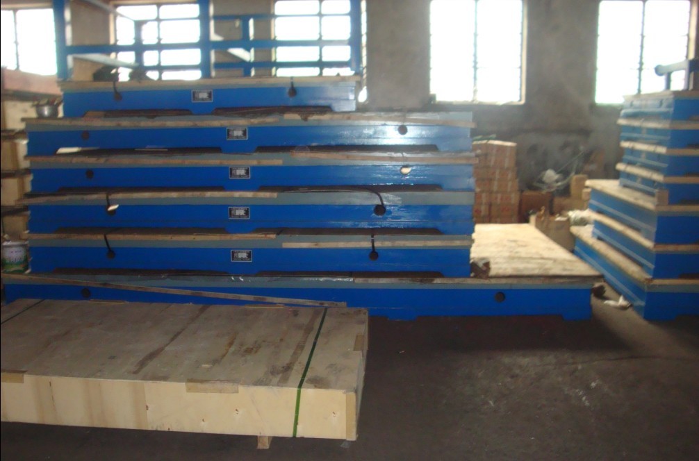 鑄鐵平臺產(chǎn)品別名: 鑄鐵平板鑄鐵平臺 劃線平板  檢驗平板    測量平板   刮研平板   裝配平板 鑄鐵平臺按GB/4986-85的標(biāo)準(zhǔn)制造,產(chǎn)品制成筋板式和箱體式,工作有長方形,材料HT200,工作面采用刮研工藝,工作面上可加V型、T型、U型槽和圓孔、長孔等。平板是用于工件檢測或劃線的平面基準(zhǔn)器具。平板安裝應(yīng)調(diào)至水平、負(fù)荷均分布于各支點上,環(huán)境溫度(20±5℃)使用時應(yīng)避免振動。     鑄鐵平臺用途:用于機械、發(fā)動機的動力實驗,設(shè)備調(diào)試,具有較好的平面穩(wěn)定性和韌性,表面帶有T型槽,可以用來固定實驗設(shè)備。  鑄鐵平臺材質(zhì):高強度鑄鐵HT200-300工作面硬度為HB170-240,經(jīng)過兩次人工處理(人工退火600度-700度和自然時效2-3年)使用該產(chǎn)品的精度穩(wěn)定,耐磨性能好。 鑄鐵平臺規(guī)格:100×100—3000×8000,(大于此規(guī)格的鑄鐵平臺可以拼裝使用或按圖紙訂做。) 鑄鐵平臺精度:按國家標(biāo)準(zhǔn)計量檢定規(guī)程執(zhí)行,分別為0、1、2、3四個等級。  規(guī)格  | 精度等級  | 規(guī)格  | 精度等級  |  0級  | 1級  | 2級  | 3級  | 精刨  | 0級  | 1級  | 2級  | 3級  | 精刨  |  100×100  | 4  | 8  | 26  |  |  | 2500×2500  |  |  | 72  | 180  | 270  |  200×100  | 5  | 10  | 20  |  |  | 3000×1000  |  |  |  | 168  | 248  |  200×200  | 5  | 10  | 20  |  |  | 3000×1500  |  |  |  | 174  | 154  |  300×200  | 6  | 12  | 24  |  |  | 3000×2000  |  |  |  | 184  | 275  |  300×300  | 6  | 12  | 24  |  |  | 3000×2500  |  |  |  | 186  | 276  |  400×300  | 6  | 12  | 24  |  |  | 3000×3000  |  |  |  | 210  | 300  |  400×400  | 6  | 12  | 24  |  |  | 4000×1000  |  |  |  | 210  | 300  |  500×300  | 6  | 12  | 24  |  |  | 4000×1500  |  |  |  | 210  | 300  |  500×500  | 7  | 14  | 28  |  |  | 4000×2000  |  |  |  | 219  | 310  |  600×400  | 7  | 14  | 28  |  |  | 4000×2500  |  |  |  | 228  | 340  |  600×500  | 7  | 14  | 28  |  |  | 4000×3000  |  |  |  | 240  | 360  |  800×500  | 8  | 16  | 32  | 80  |  | 5000×1500  |  |  |  | 249  | 370  |  800×600  | 8  | 16  | 32  | 80  |  | 5000×2000  |  |  |  | 255  | 375  |  900×600  | 8  | 16  | 32  | 80  |  | 5000×2500  |  |  |  | 264  | 390  |  1000×750  | 9  | 18  | 36  | 90  |  | 5000×3000  |  |  |  | 287  | 420  |  1000×1000  | 10  | 20  | 39  | 96  |  | 6000×1500  |  |  |  | 287  | 420  |  1200×1000  |  | 20  | 39  | 96  |  | 6000×2000  |  |  |  | 293  | 430  |  1500×1000  |  | 24  | 48  | 120  |  | 6000×2500  |  |  |  | 300  | 450  |  1500×1500  |  | 25  | 50  | 125  |  | 6000×3000  |  |  |  | 308  | 460  |  2000×1000  |  | 26  | 52  | 129  |  | 8000×1500  |  |  |  | 366  | 500  |  2000×1500  |  |  | 56  | 140  |  | 8000×2000  |  |  |  | 370  | 520  |  2000×2000  |  |  | 60  | 152  | 230  | 8000×2500  |  |  |  | 375  | 530  |  2500×1500  |  |  | 64  | 152  | 230  | 8000×3000  |  |  |  | 382  | 570  |  2500×2000  |  |  | 68  | 168  | 248  |  |  |